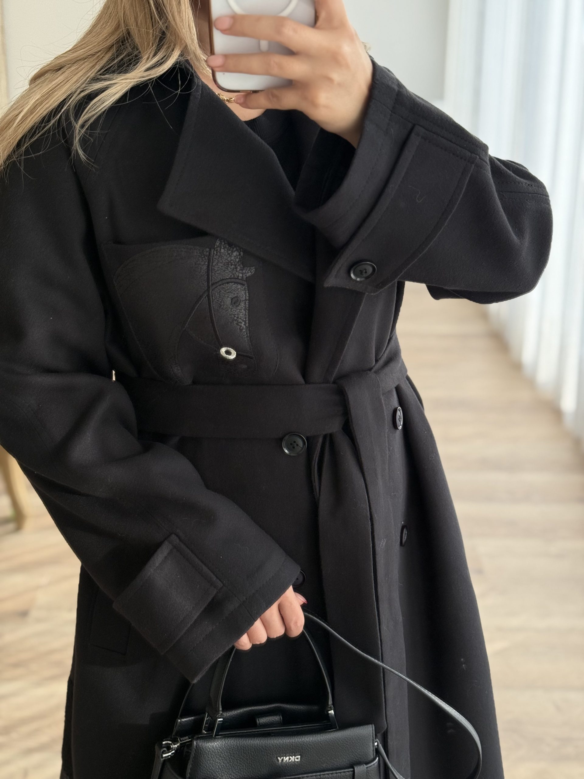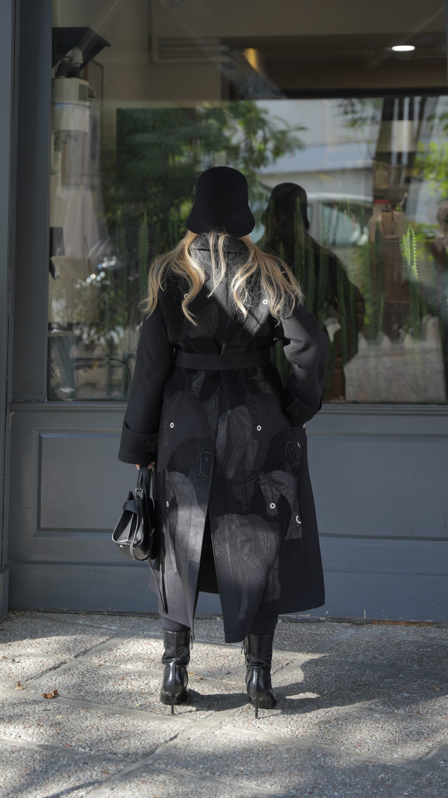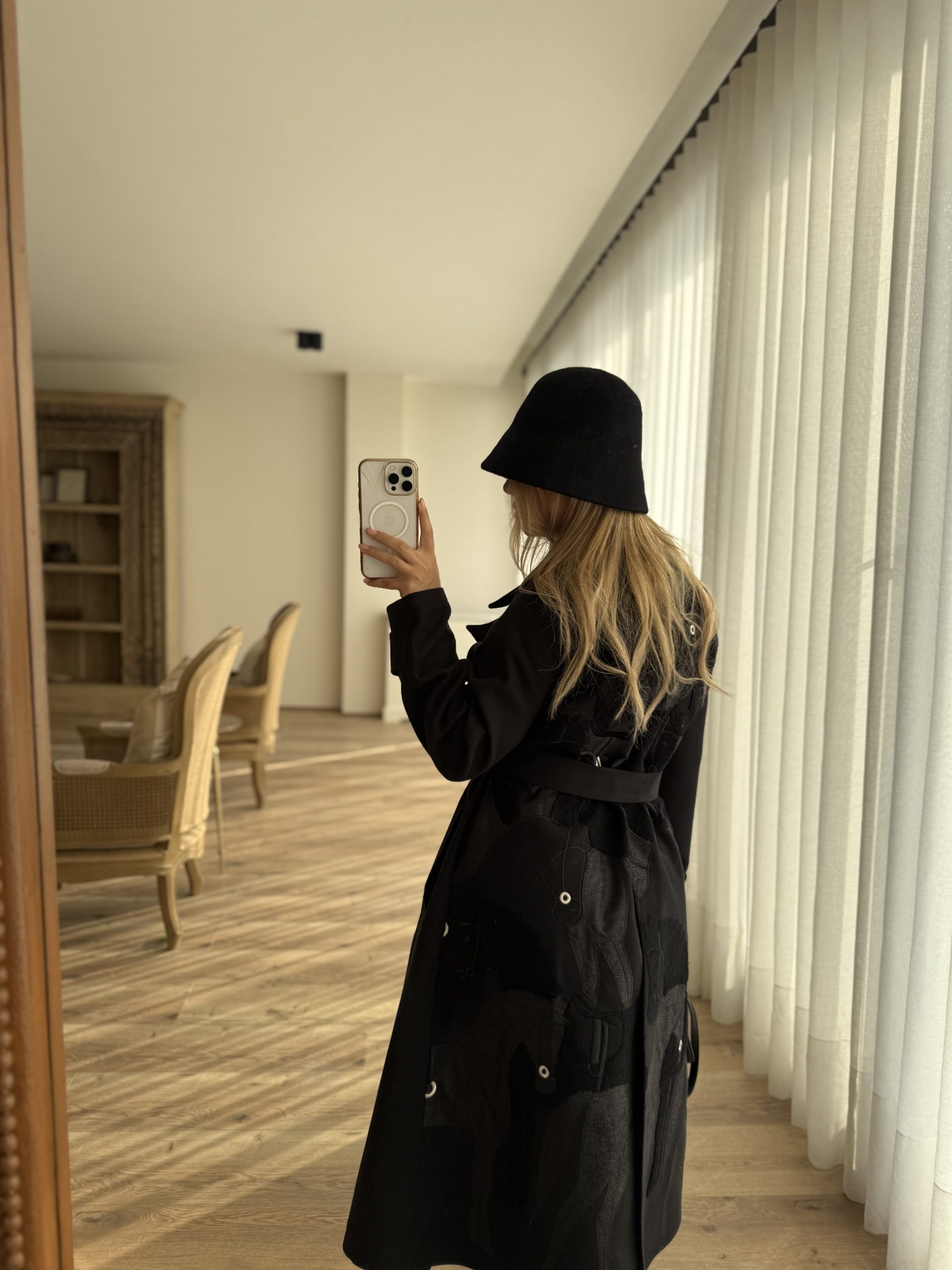 جنس جلوی کار فوتر و قسمت پشت پالتو فوتر ترکیب شده با گلدوزی وچرم دوزی لیزر کات