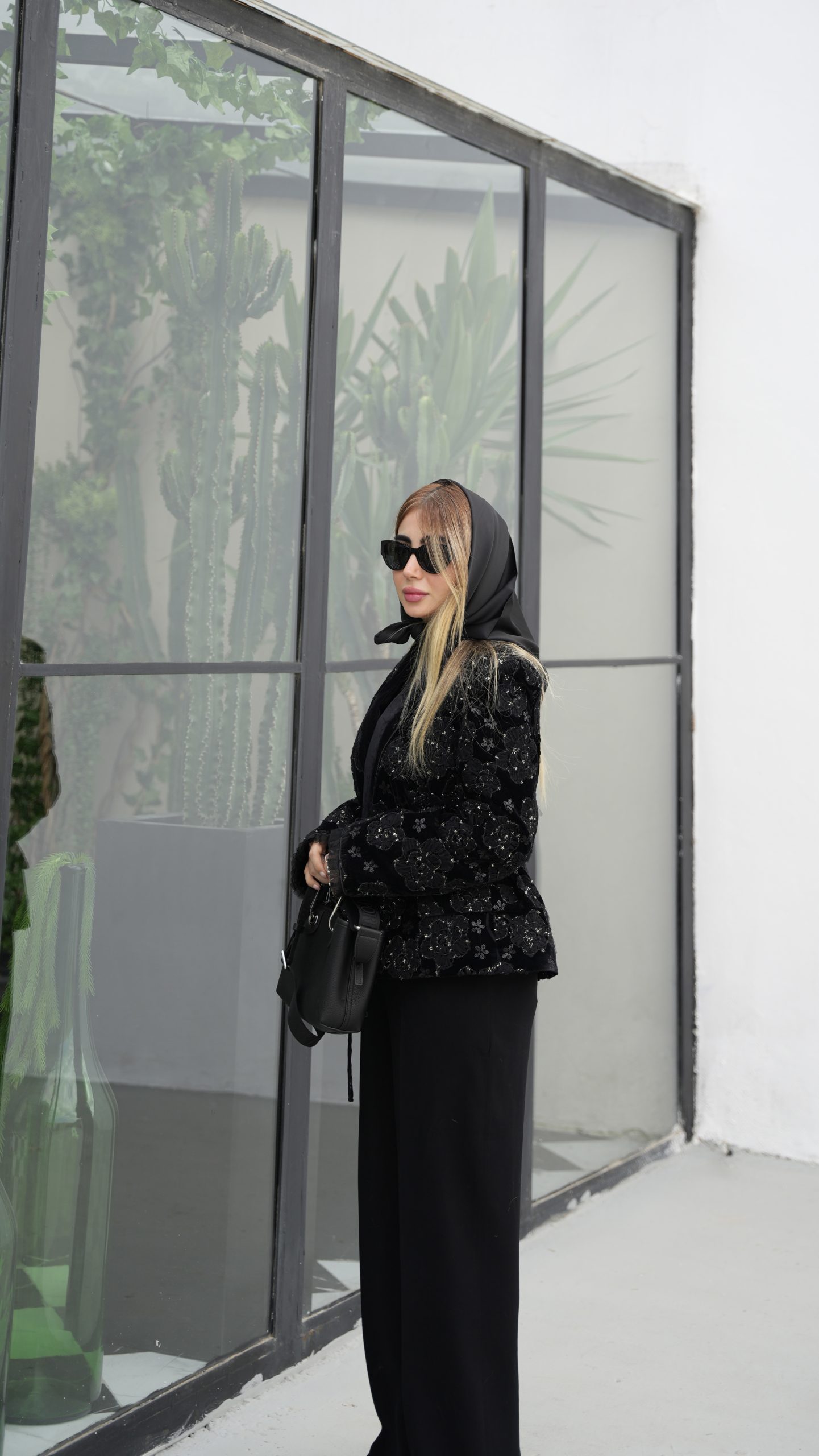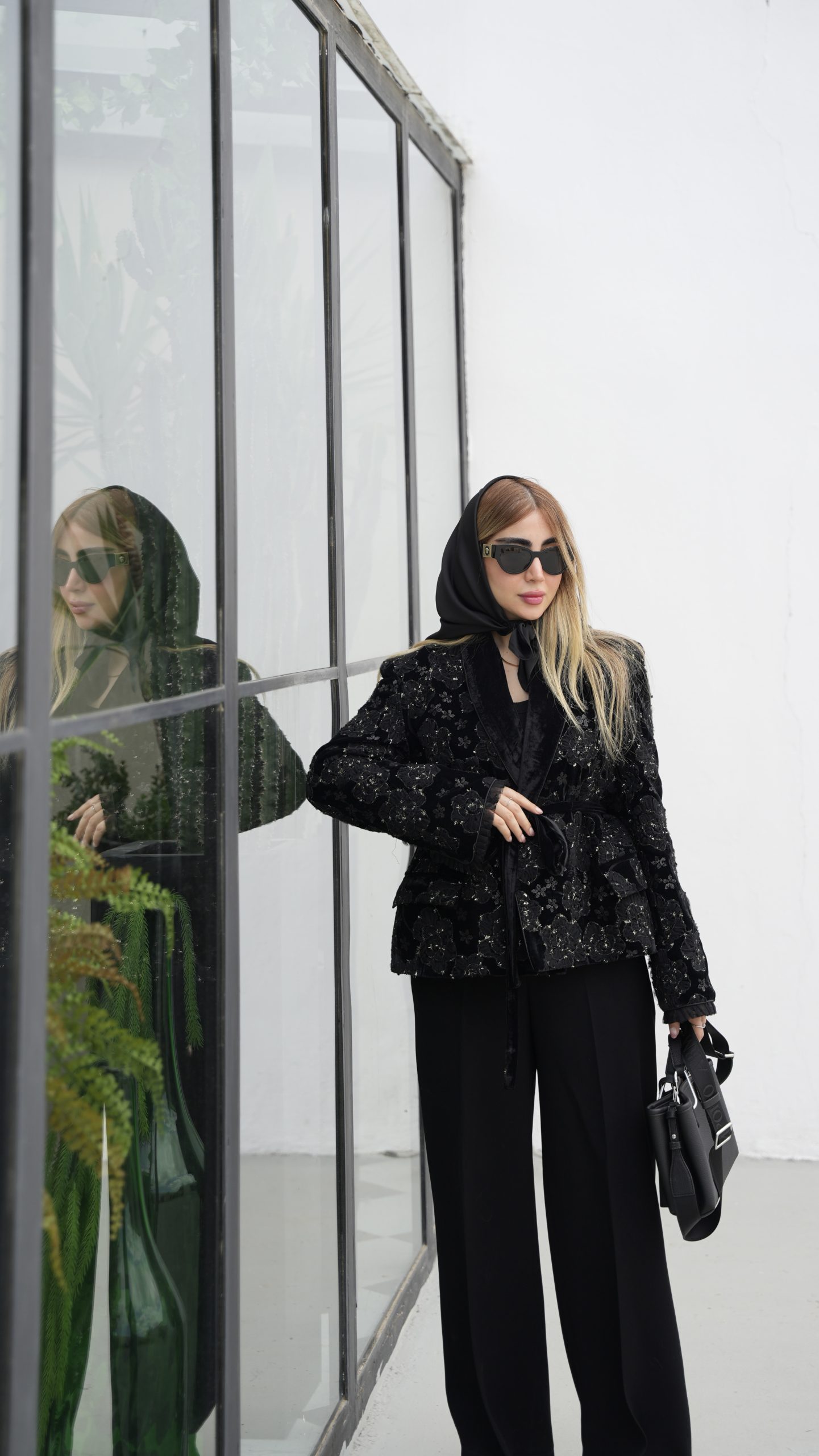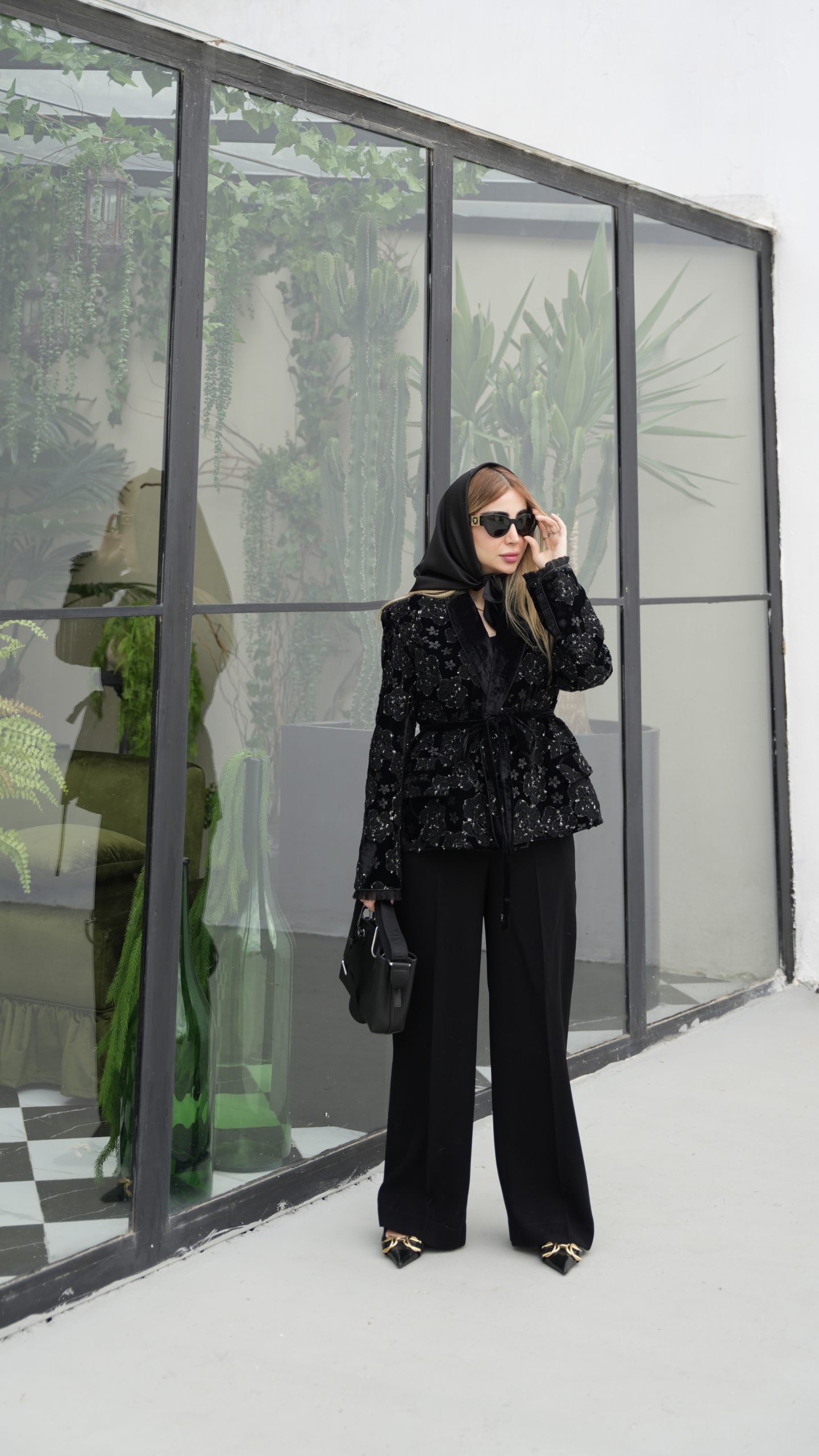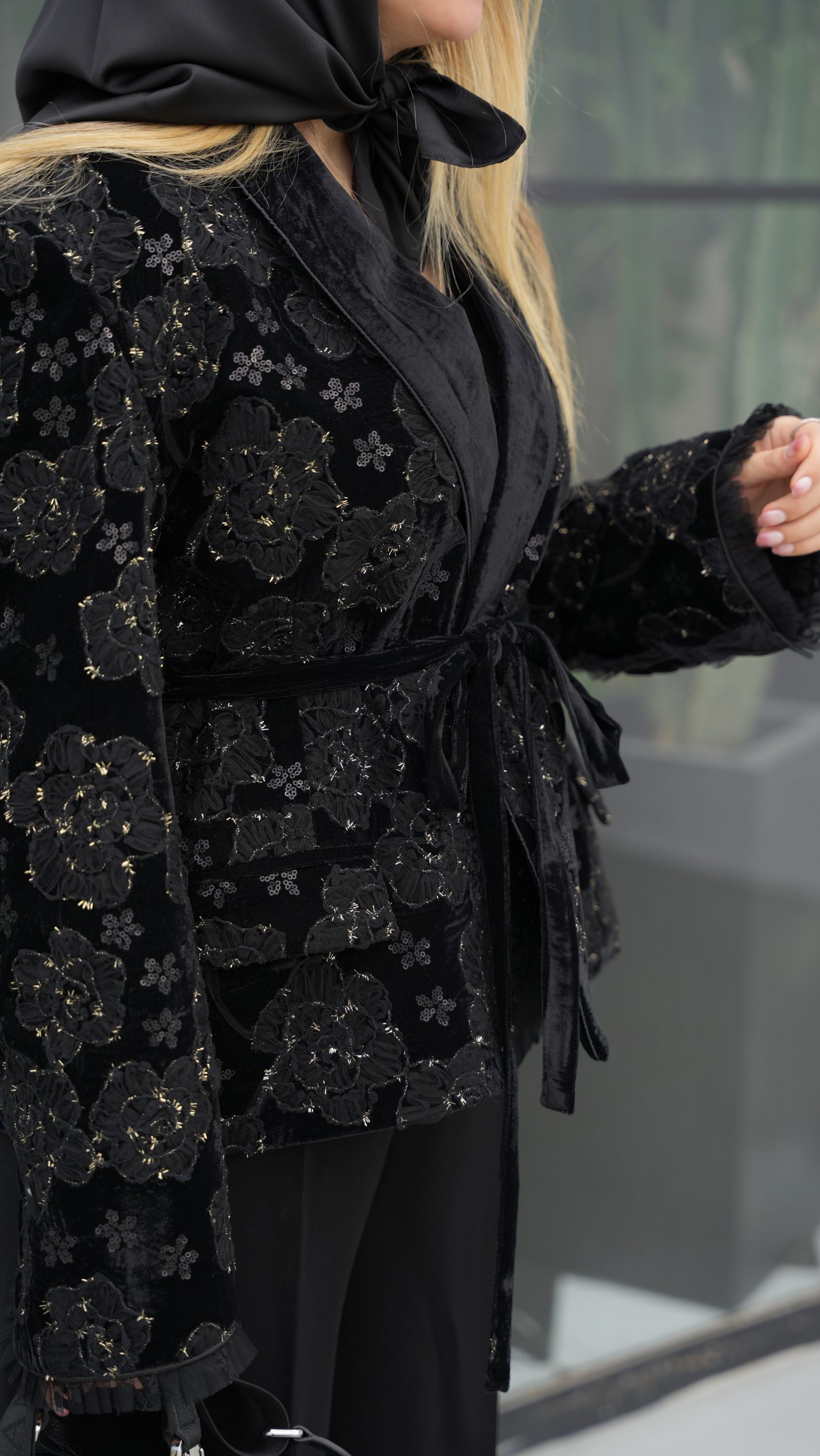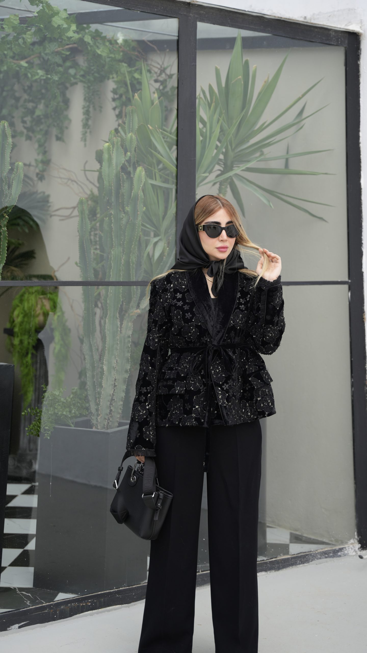 کت مخمل روبان دوزی شده با توربا یقه ارشال مغزی کاری شده وارداتی