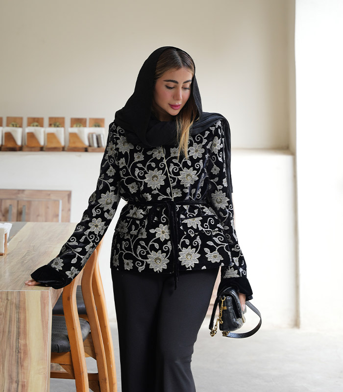 کل مانتو لایی کشی شده وجلوی کار استر دارد